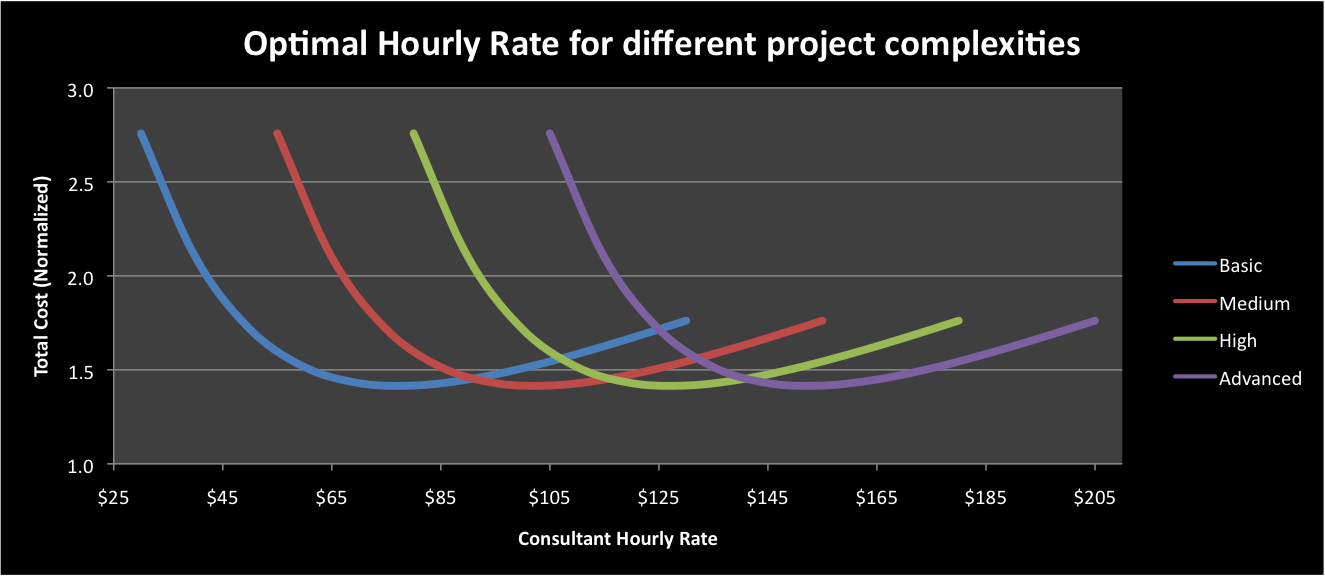 - How tough is the proposed work? This lets the client and you, together, identify which of the family of “Optimal Hourly Rate” curves applies to their project